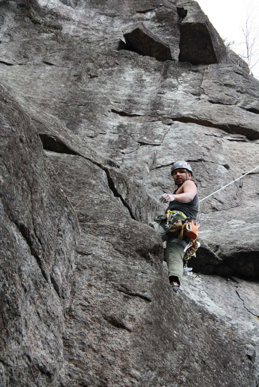 Après 12 ans d’escalade traditionnelle, j’ai décidé de me lancer en artif. J’en avais déjà fait à quelques reprises et j’avais bien aimé. Après avoir contacté la fqme pour suivre un cours, surprise?! Aucun cours d’artif ne se donne officiellement au Québec. J’ai donc contacté un ami, un vieux de la vielle, dans la milieu de l’escalade (Arian Manchego) et il m’a referé Yann Camus en me disant “c’est pas mal LA référence en artif au Québec”. Yann a très bien reçu mon appel et m’a même invité chez eux pour me montrer quelque techniques. Par la suite il m’a même conseillé pour l’achat de matériel. Merci Yann!