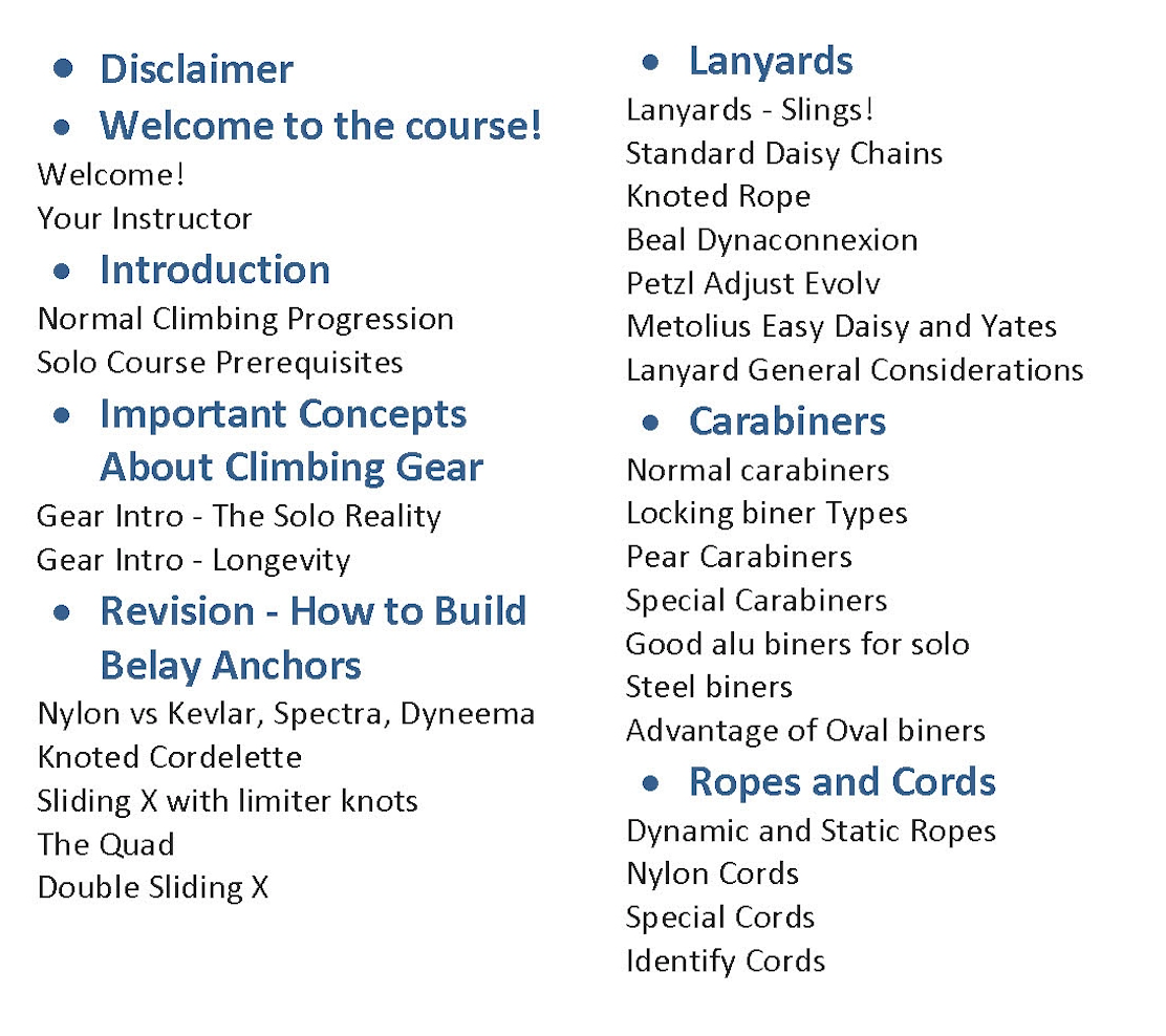 Yann’s course is the only place on the Internet with this kind and depth of infomation. Yes we can read an article over here or a few words there about rope soloing, but Yann has put it into the relaxed form of videos where you can sit back and let the infomation flow in! Easy days!