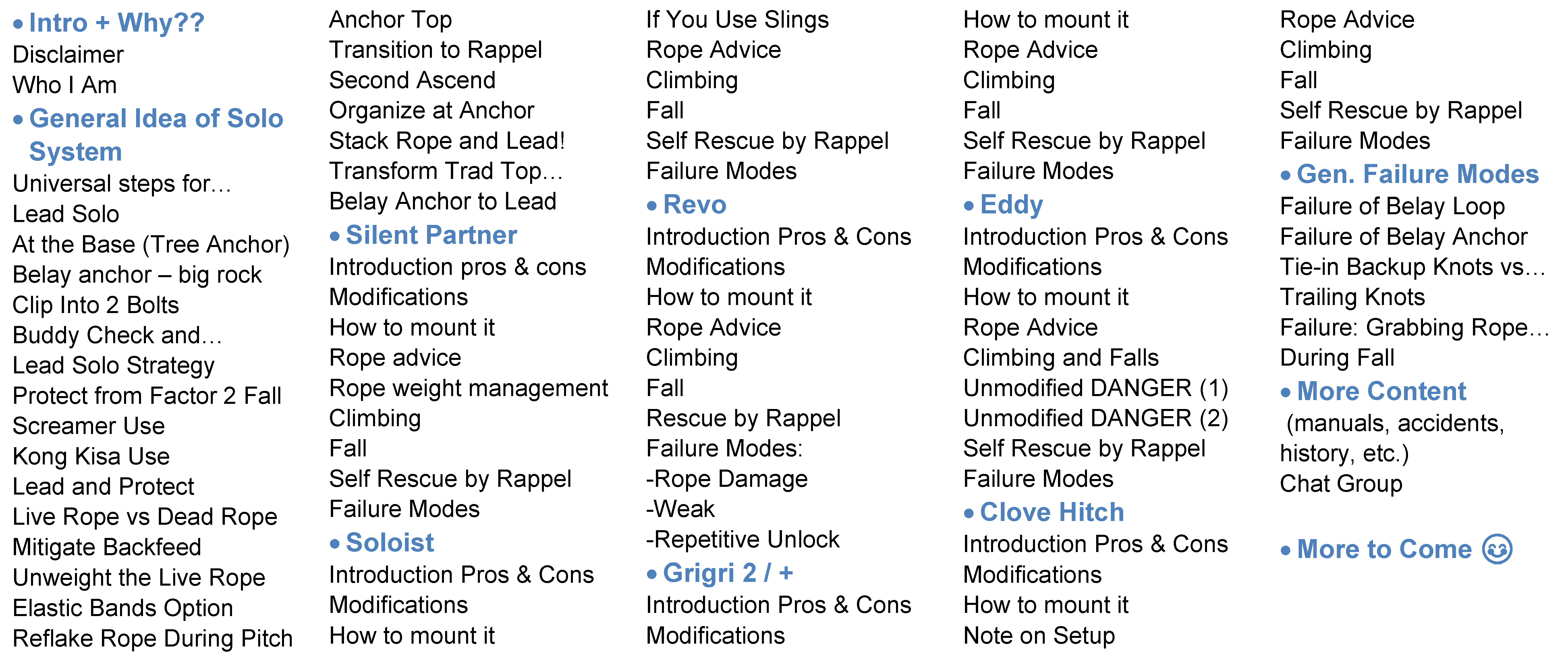 Subjects include: general principles, devices-specific recommendations, suggested knots, belay anchors, self rescue and more! It includes the Vergo, NEOX, Pinch, Silent Partner, Soloist, El Mudo 2.0, El Mudo 3.0, Revo, Eddy, Grigri 1, Grigri 2, Grigri (2019/3), Grigri Plus, Goblin, LOV2, LOV3 and Knots only methods. Note that the IceRock Gnome is also 50%+ covered.